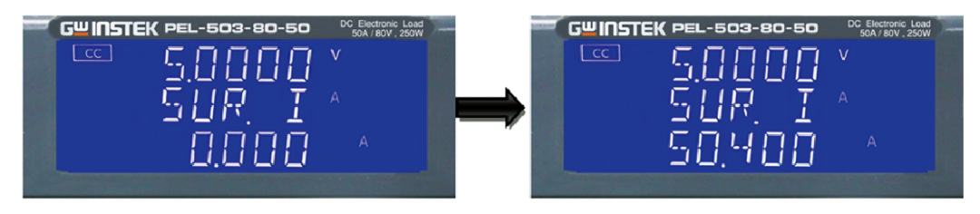Surge功能可供用戶依據測試需求設定Surge電流、Normal電流、Surge Time和Surge STEP。Surge電流與Normal電流可設定范圍從0.000A到50.400A,Surge Time可設定范圍從10到1000ms,Surge STEP設定范圍從1到5。