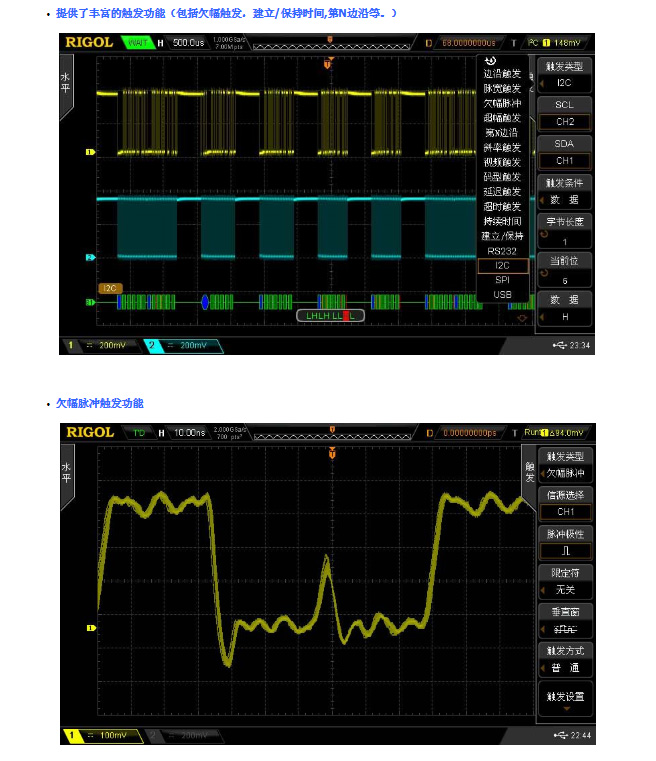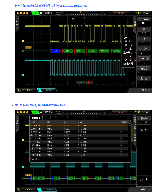 豐富的觸發和總線的解碼功能(并行,RS232,I2C,SPI,CAN)