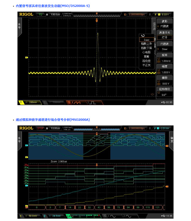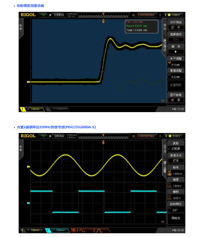 內置雙通道,25 MHz信號源(MSO/DS2000A-S)