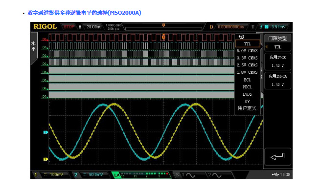 實時采樣速率高達2G Sa/s 數字通道達1GSa/s(MSO);