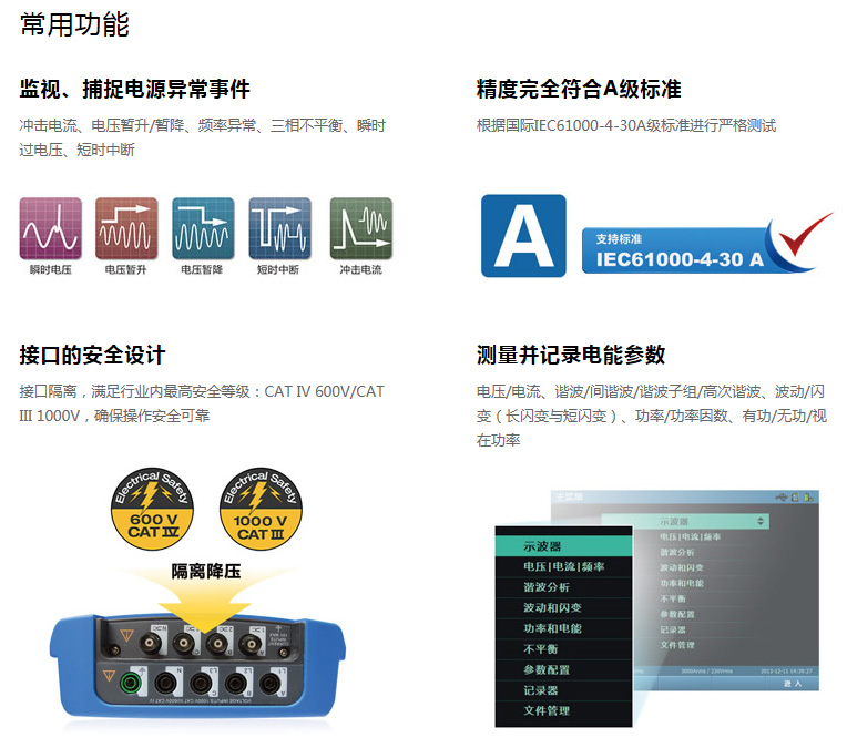 | 測(cè)量性能 | IEC 61000-4-30 A級(jí) |