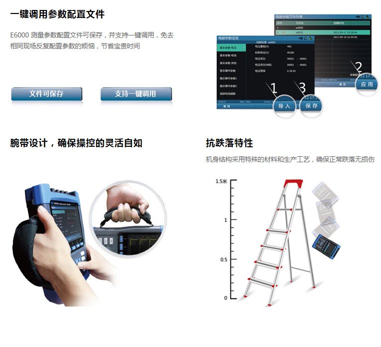 | 電壓測(cè)量量程 | 標(biāo)稱值:120V、230V、400V、1000V,最大可測(cè)6000V瞬時(shí)電壓 |