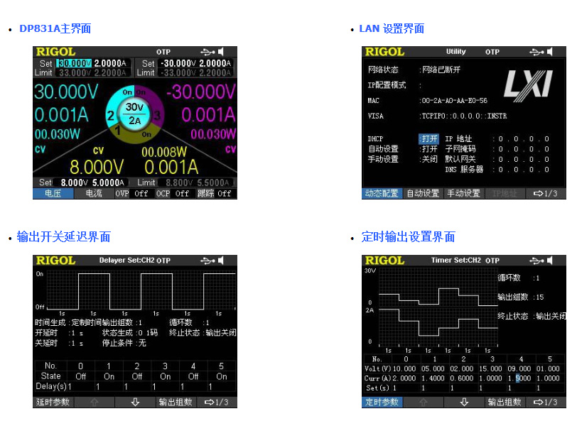 DP800系列屬于高性能的可編程直流電源。它們擁有強大的定時輸出功能,低紋波和噪聲,全面的過壓、過流、過溫保護功能,快速瞬態響應,擁有寬大、清晰的用戶界面,優異的性能指標,多種標準配置接口,可滿足臺式及集成的多種測試需求。