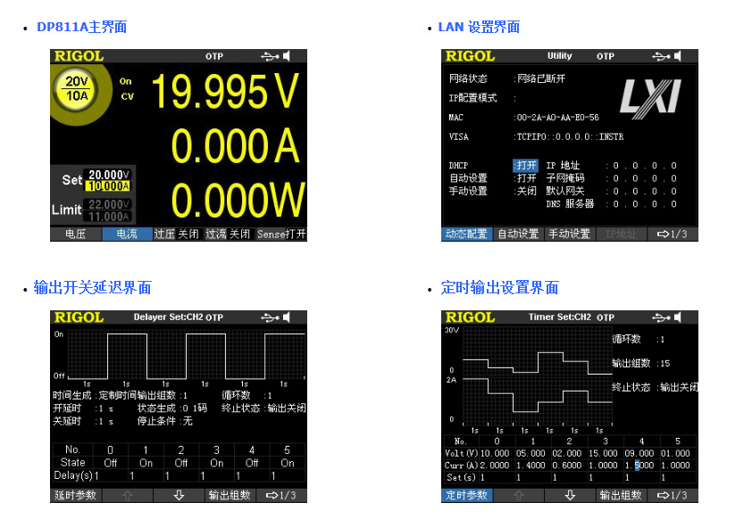 DP800系列屬于高性能的可編程直流電源。它們擁有強(qiáng)大的定時(shí)輸出功能,低紋波和噪聲,全面的過壓、過流、過溫保護(hù)功能,快速瞬態(tài)響應(yīng),擁有寬大、清晰的用戶界面,優(yōu)異的性能指標(biāo),多種標(biāo)準(zhǔn)配置接口,可滿足臺(tái)式及集成的多種測(cè)試需求。
