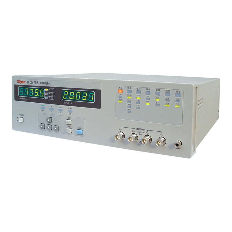 TH2776型電感測量儀是一種高精度、寬測試范圍的電感參數測量儀器,可方便選擇100 Hz、120 Hz、1 kHz、10 kHz、40 kHz、100 kHz六個典型測試頻率,并可選擇0.1 V、0.3 V、1.0 V三個測試信號電平。可測量串聯等效電感Ls、并聯等效電感Lp、串聯等效電阻ESR、并聯等效電阻EPR、品質因數Q等多種參數。本儀器將強大的功能、優越的性能及簡單的操作結合在一起, 既能適應生產現場高速檢驗的需要, 又能滿足實驗室高準確度高穩定度的測量需要, 同時儀器所提供的HANDLER及RS-232C接口為儀器使用于元件自動分選系統和與計算機聯網通訊提供了條件, 打印接口可直接將儀器測量條件與結果輸出至打印機。