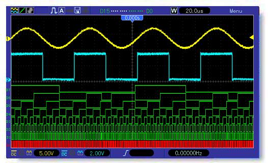 • 16通道邏輯分析儀+雙通道示波器+外觸發